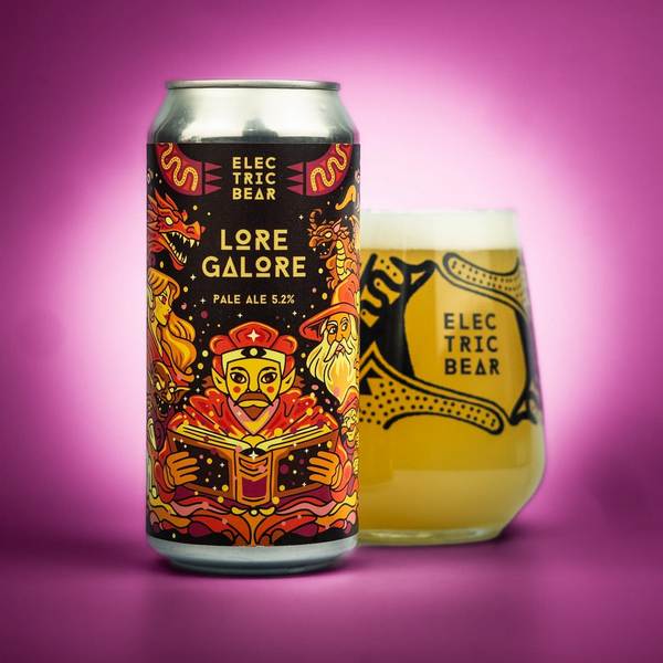 Lore Galore (5.2% ABV) is a new pale ale from Electric Bear. Pouring bright gold, it hits you with juicy tinned peaches, soft wild honey florals, and a sharp flick of lemon zest, all riding a smooth, silky malt base.