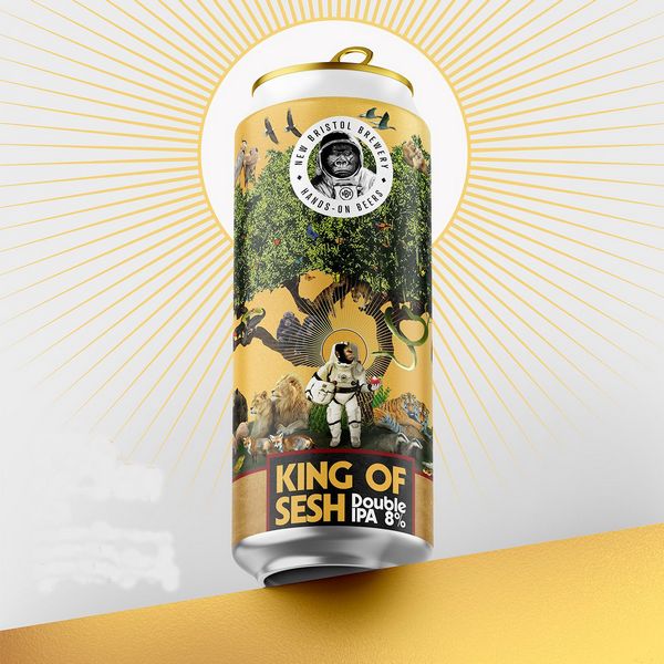 King of Sesh (8% ABV) is a double IPA version of New Bristol’s Joy of Sesh IPA. “Bigger, bolder, and juicier,” it’s hopped with Citra, Mosaic, and Amarillo.